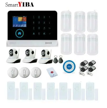 Best Product SmartYIBA WIFI Home Security Alarm System GSM Alarmes IP Camera Smoke Fire Alarm Kits Door/Window S